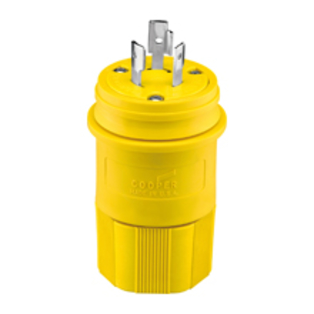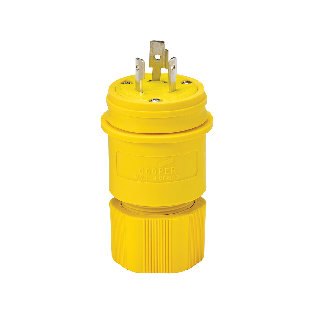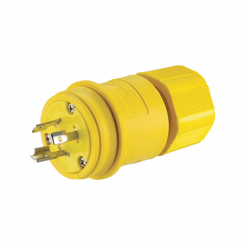 EATON Arrow Hart® Hart-Lock® L1020PW Locking Plug, 125/250 V, 20 A, 3 Poles, 3 Wires, Yellow