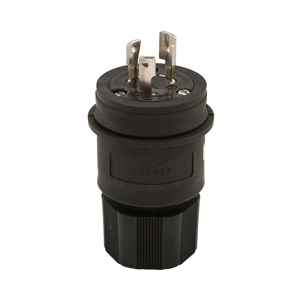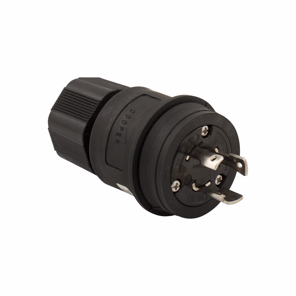 EATON Arrow Hart® L1030PWBK Complex Environment Non-Grounding Watertight Locking Plug, 125/250 VAC, 30 A, 3 Poles, 3 Wires, Black