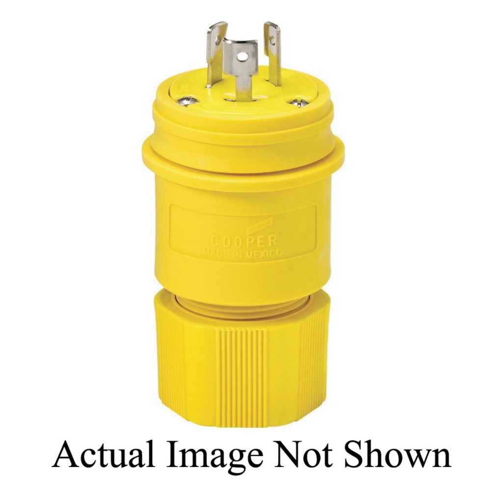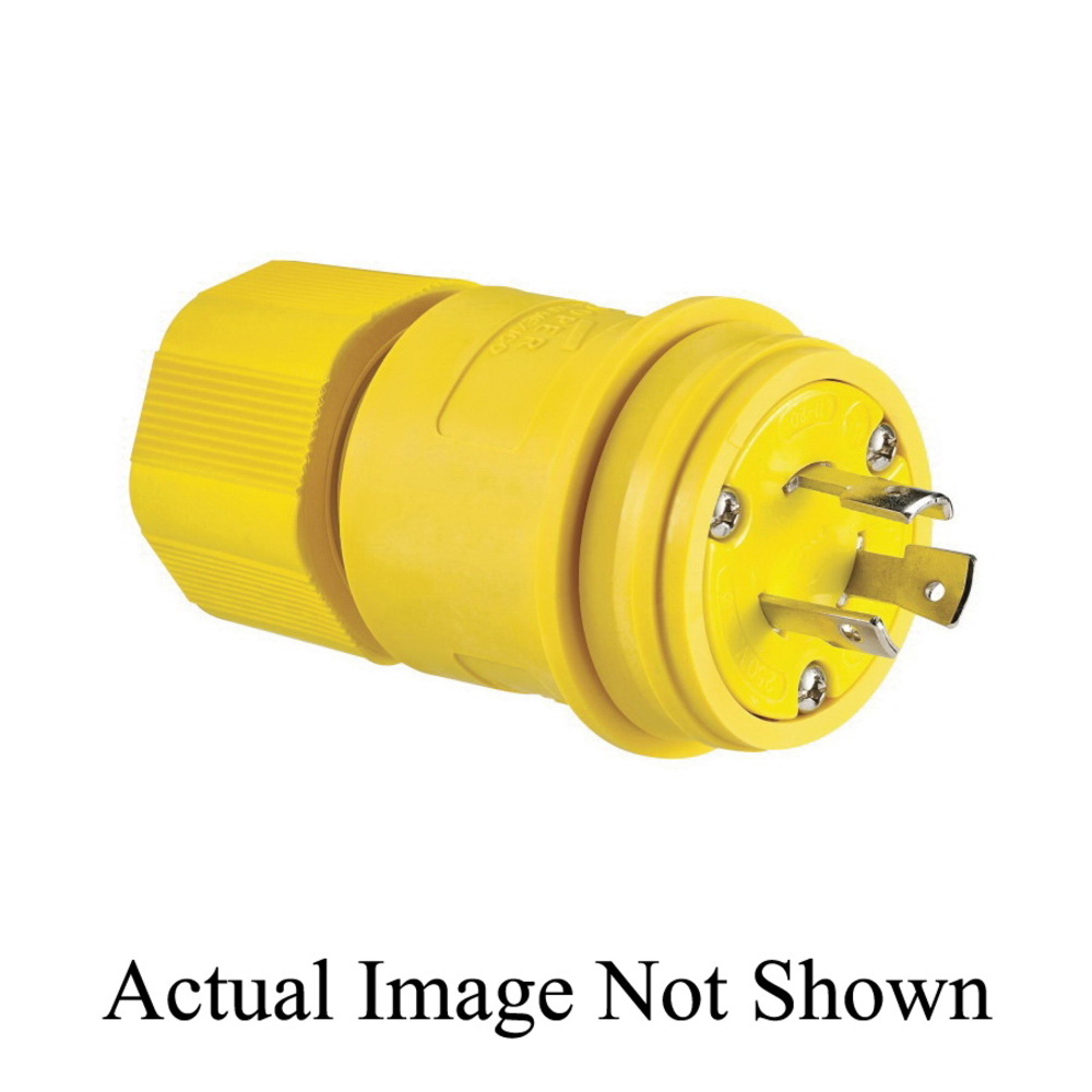 EATON Arrow Hart® L1120PWBK 3-Phase Complex Environment Non-Grounding Watertight Locking Plug, 250 VAC, 20 A, 3 Poles, 3 Wires, Black