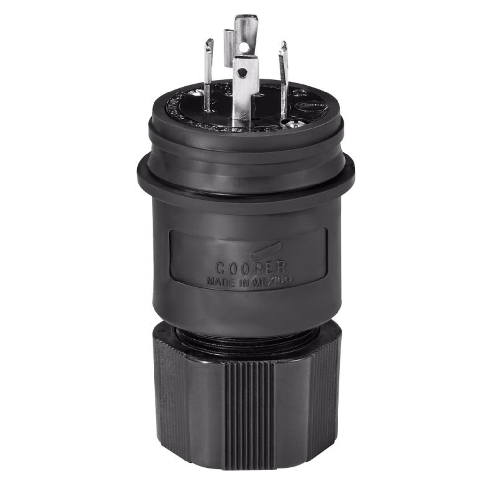 EATON Arrow Hart® L1420PWBK Complex Environment Grounding Watertight Locking Plug, 125/250 VAC, 20 A, 3 Poles, 4 Wires, Black