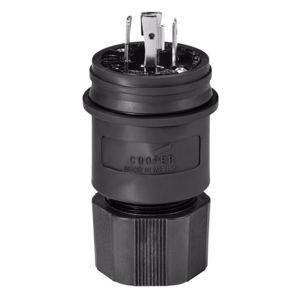 EATON Arrow Hart® L1520PWBK 3-Phase Complex Environment Grounding Watertight Locking Plug, 250 VAC, 20 A, 3 Poles, 4 Wires, Black