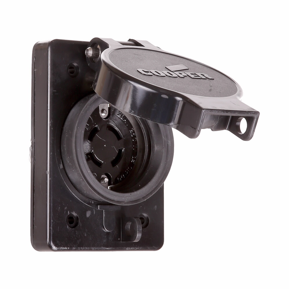EATON Arrow Hart® Hart-Lock® L1520RWBK 3-Phase Complex Environment Grounding Single Watertight Locking Receptacle, 250 VAC, 20 A, 3 Poles, 4 Wires, Black