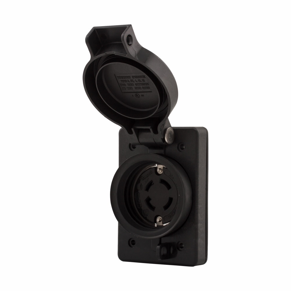EATON Arrow Hart® Hart-Lock® L1530RWBK 3-Phase Complex Environment Grounding Single Watertight Locking Receptacle, 250 VAC, 30 A, 3 Poles, 4 Wires, Black