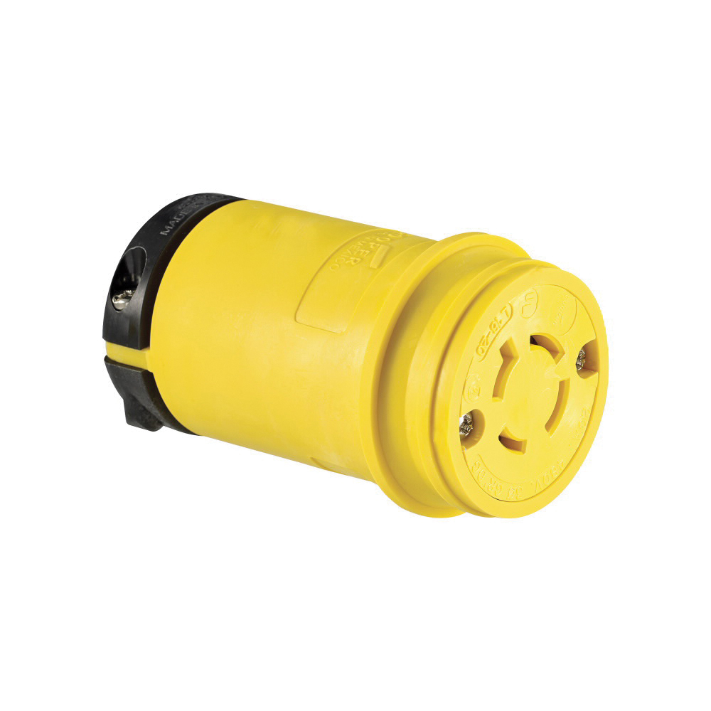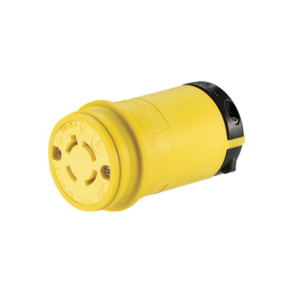 EATON Arrow Hart Hart-Lock® L1620CY 3-Phase Severe Duty Locking Connector, 480 VAC, 20 A, 3 Poles, 4 Wires, Black/Yellow