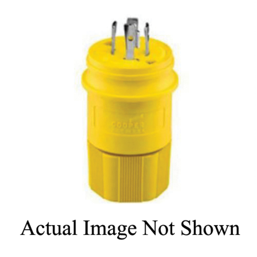 EATON Arrow Hart™ Hart-Lock® L1620PW 3-Phase Watertight Locking Plug, 480 VAC, 20 A, 3 Poles, 4 Wires, Yellow