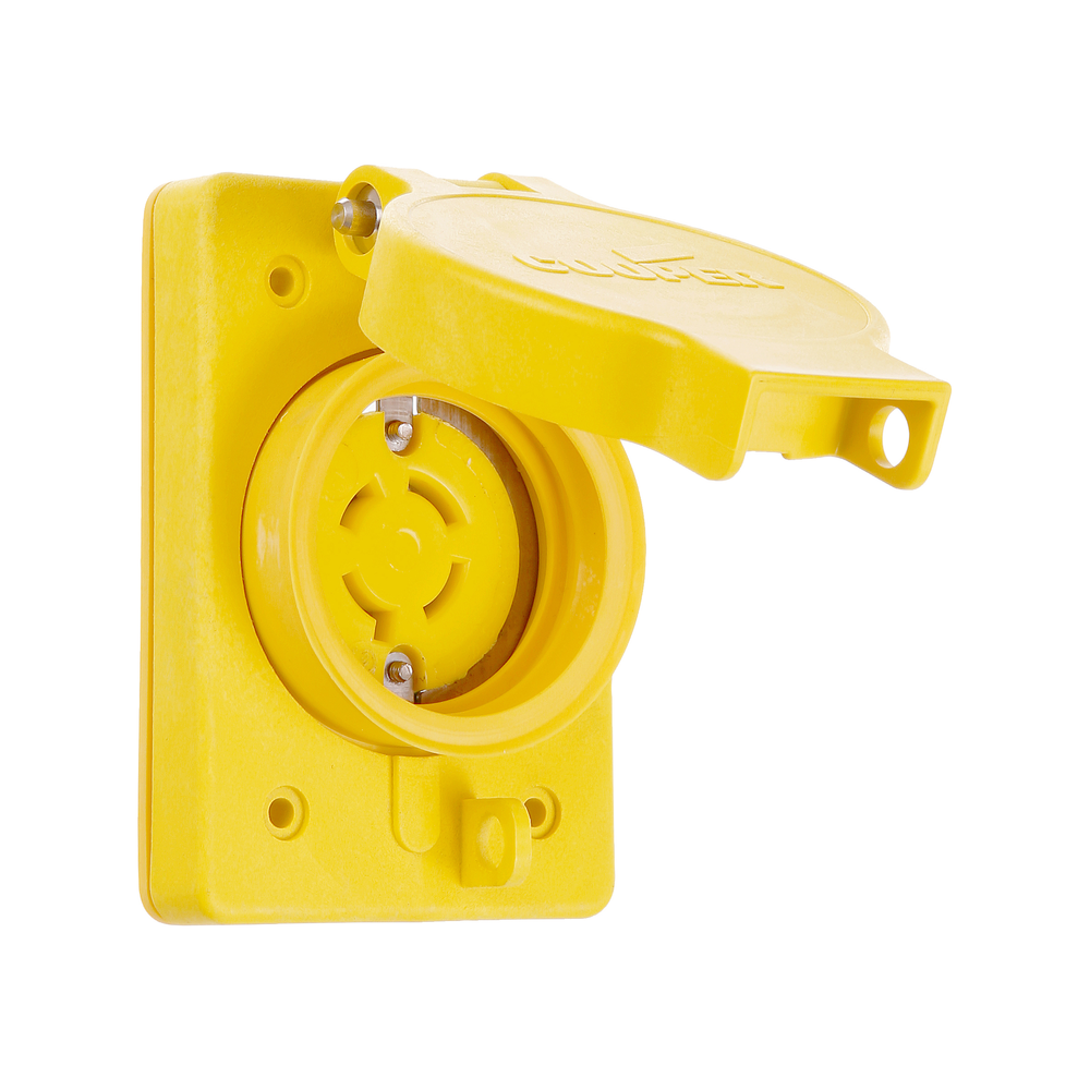 EATON Arrow Hart® Hart-Lock® L1920RW Single Locking Receptacle, 277/480 V, 20 A, 4 Poles, 4 Wires, Yellow