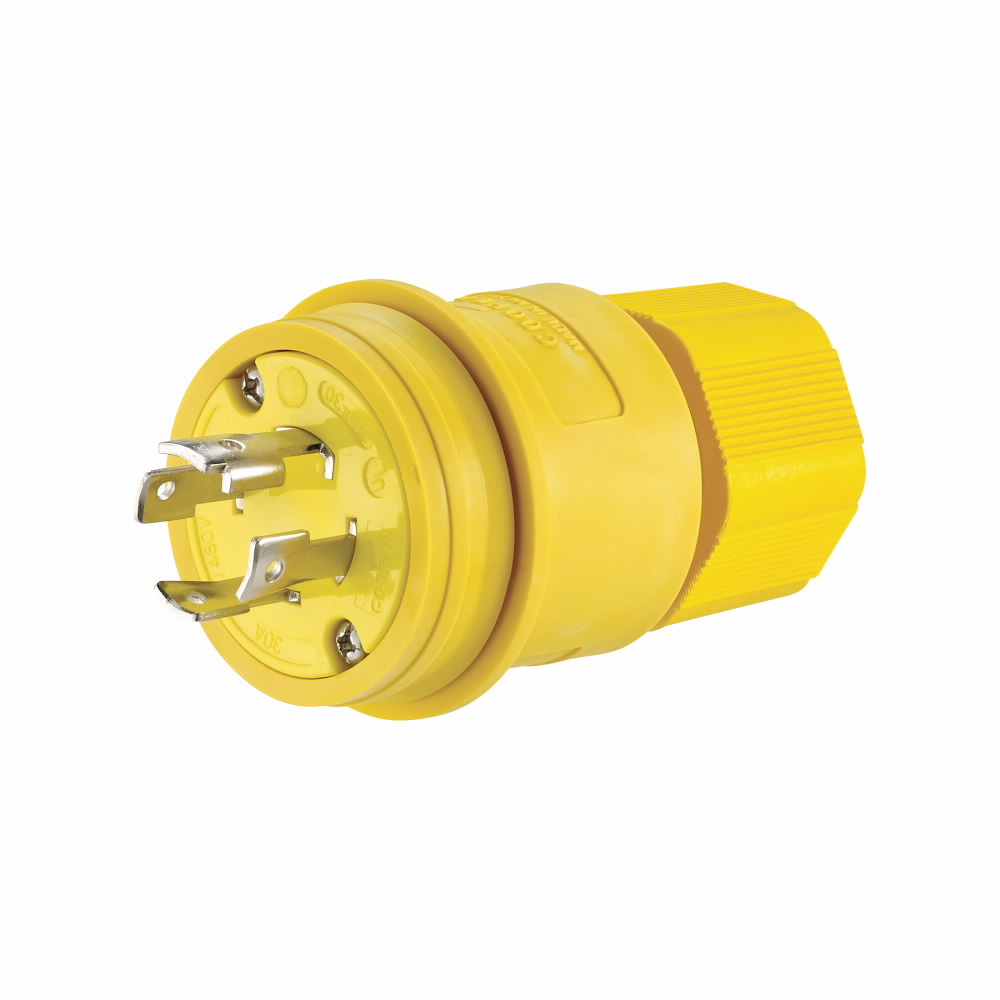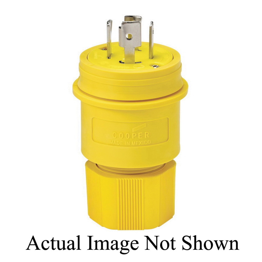 EATON Arrow Hart® L1930PWBK 3-Phase Complex Environment Non-Grounding Watertight Locking Plug, 277/480Y VAC, 30 A, 4 Poles, 4 Wires, Black