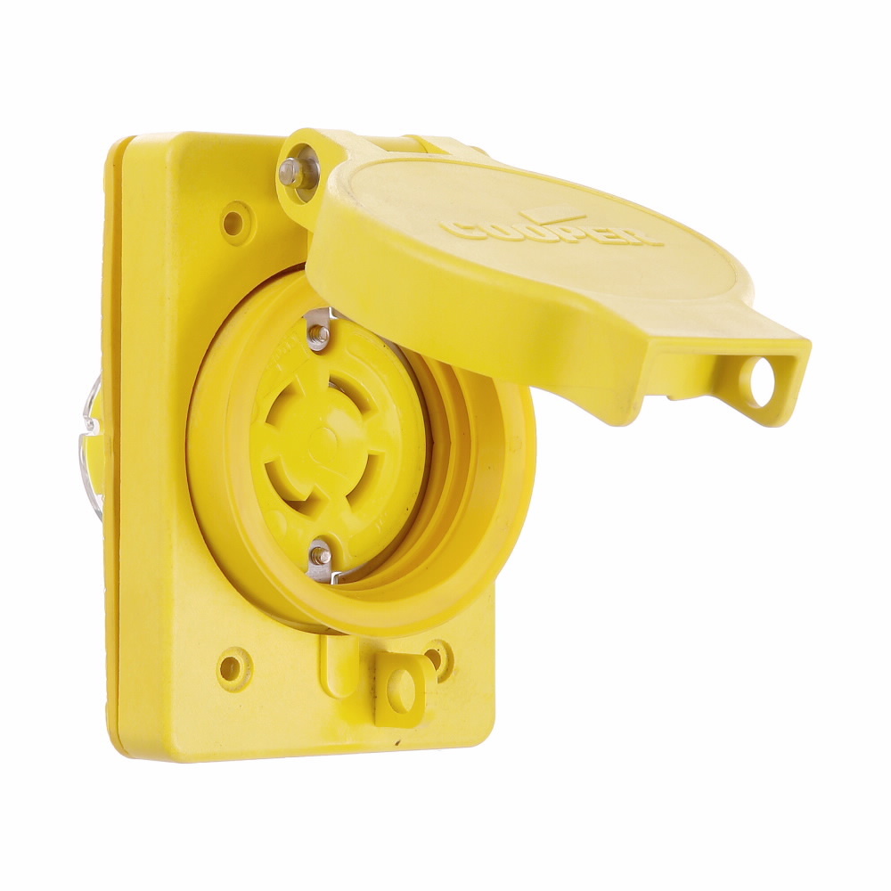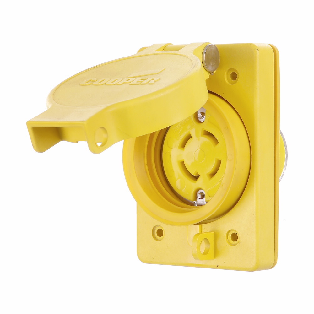 EATON Arrow Hart® Hart-Lock® L1930RW Single Locking Receptacle, 277/480 V, 30 A, 4 Poles, 4 Wires, Yellow