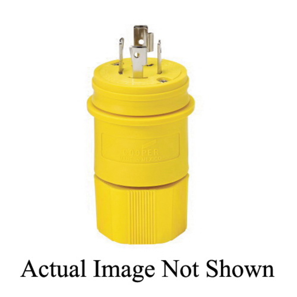 EATON Arrow Hart® L2030PWBK 3-Phase Complex Environment Non-Grounding Watertight Locking Plug, 347/600Y VAC, 30 A, 4 Poles, 4 Wires, Black