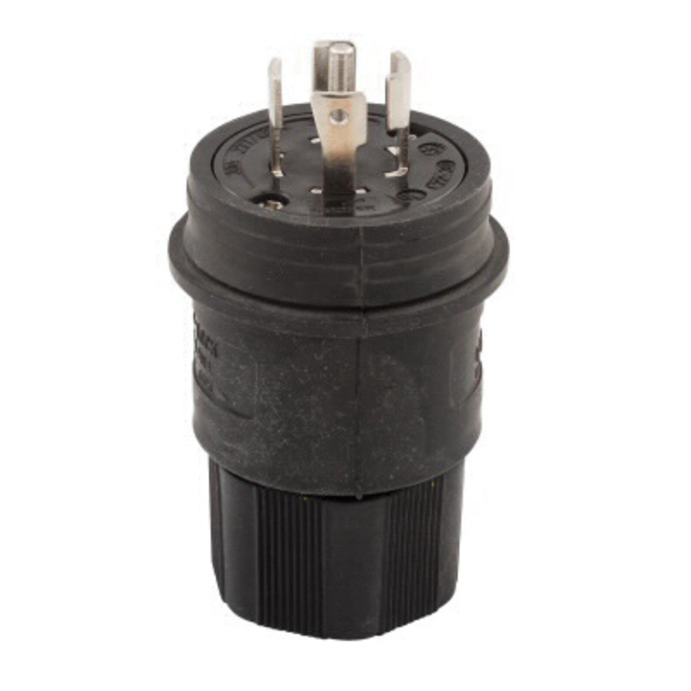 EATON Arrow Hart® L2220PWBK 3-Phase Complex Environment Grounding Watertight Locking Plug, 277/480Y VAC, 20 A, 4 Poles, 5 Wires, Black