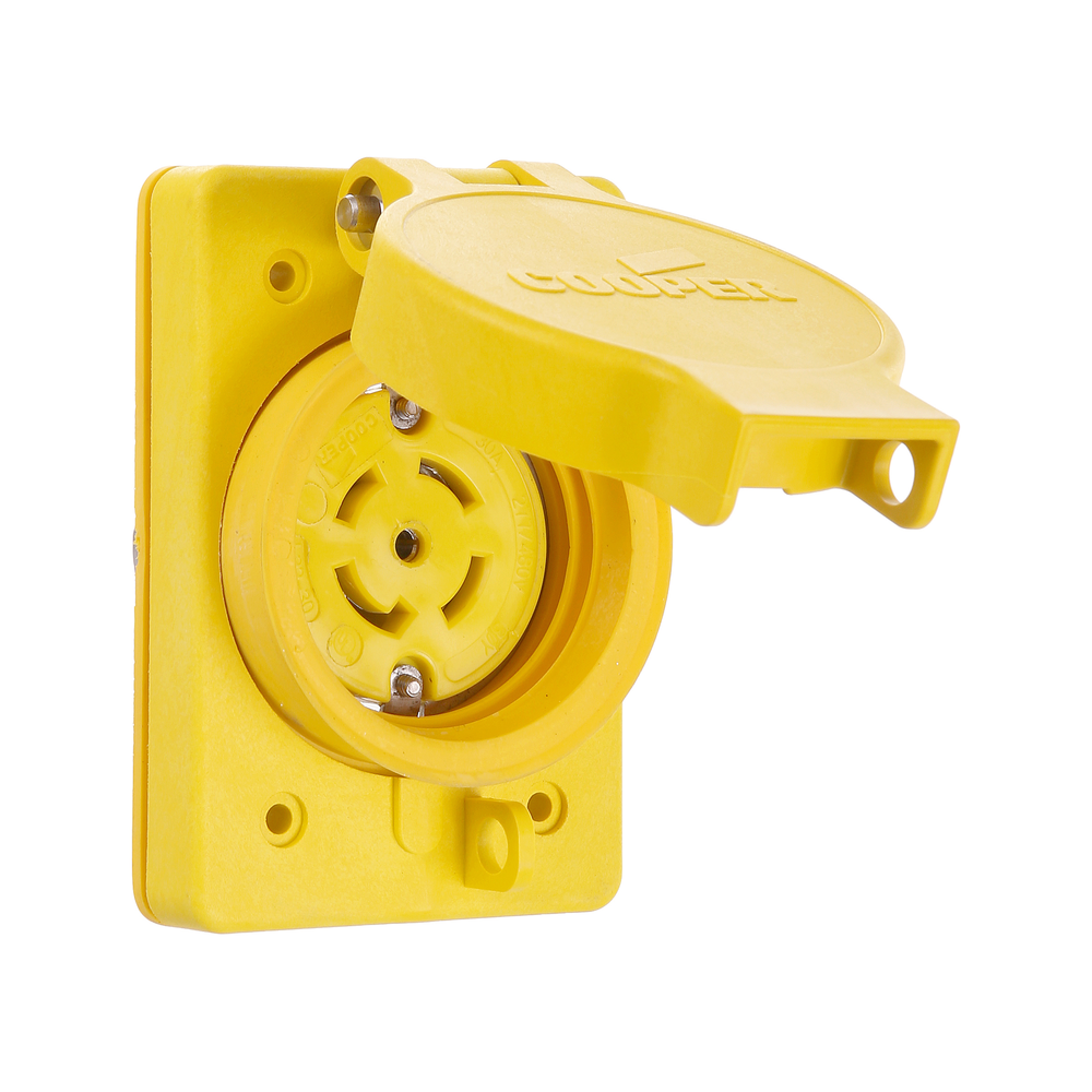 EATON Arrow Hart® Hart-Lock® L2230RW Single Locking Receptacle, 277/480 V, 30 A, 4 Poles, 5 Wires, Yellow