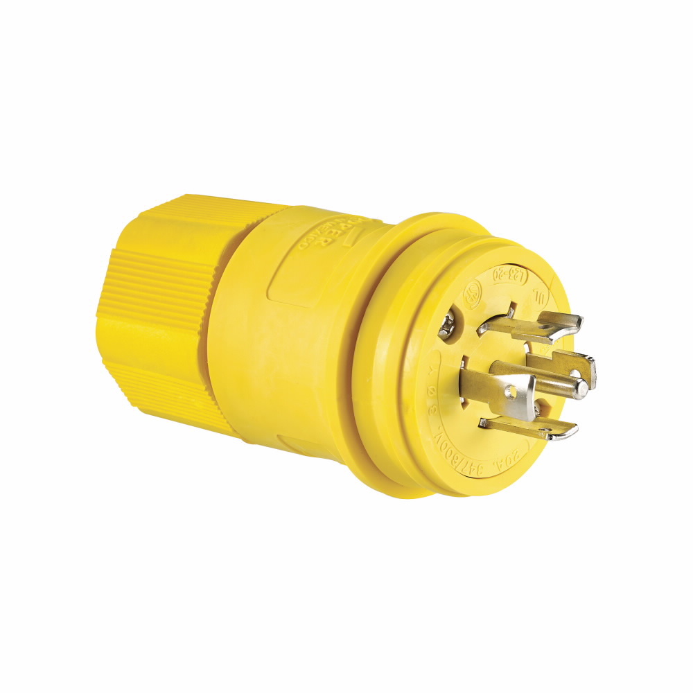 EATON Arrow Hart® L2320PWBK 3-Phase Complex Environment Grounding Watertight Locking Plug, 347/600Y VAC, 20 A, 4 Poles, 5 Wires, Black