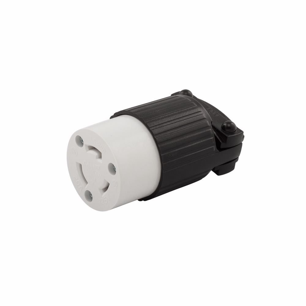 EATON Arrow Hart™ Eaton Wiring Devices L520C Locking Connector, 125 VAC, 20 A, 2 Poles, 3 Wires, Black/White