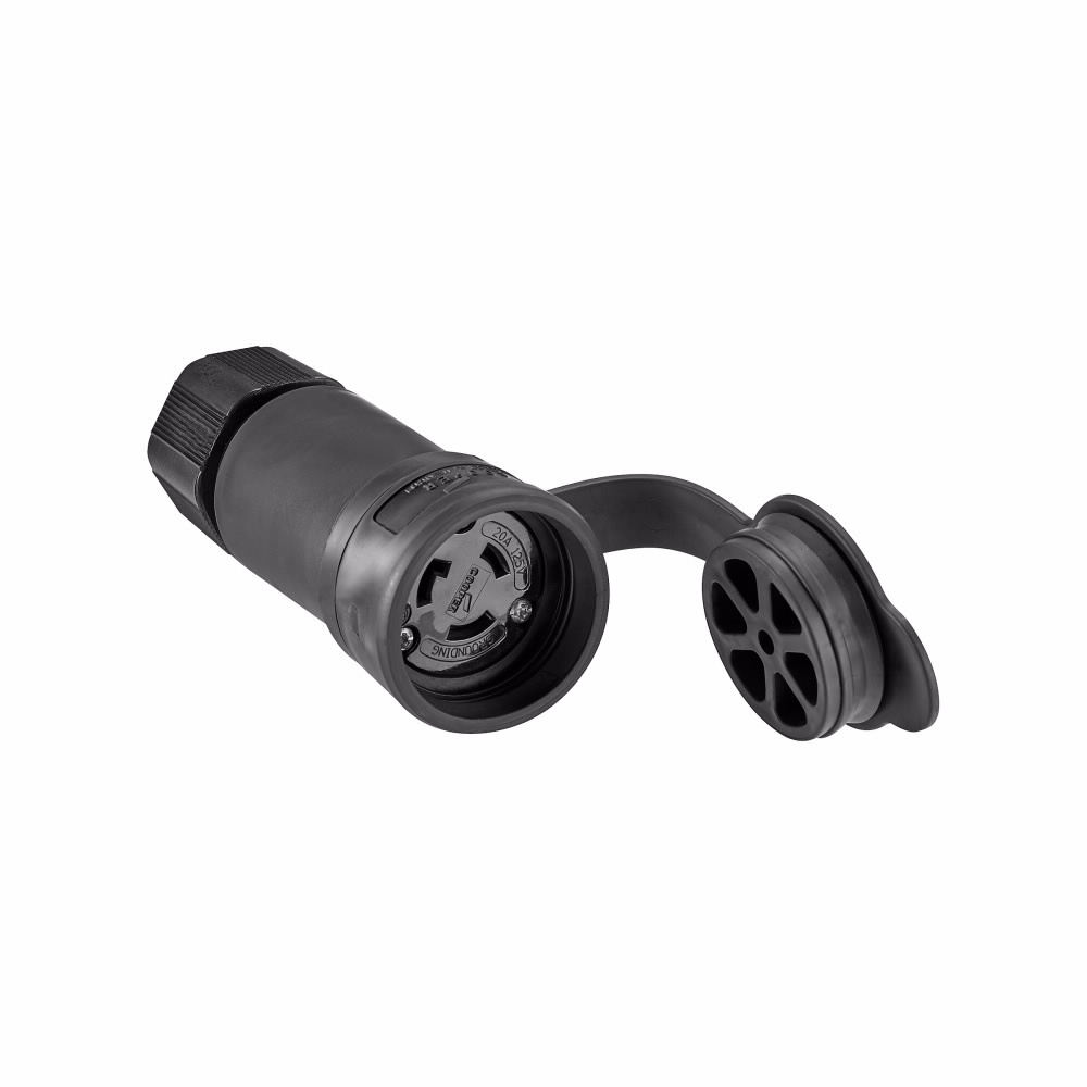 EATON Arrow Hart® L520CWBK Complex Environment Grounding Watertight Locking Connector, 125 VAC, 20 A, 2 Poles, 3 Wires, Black