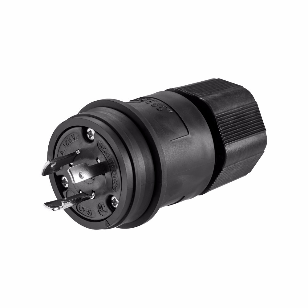 EATON Arrow Hart® L520PWBK Complex Environment Grounding Watertight Locking Plug, 125 VAC, 20 A, 2 Poles, 3 Wires, Black