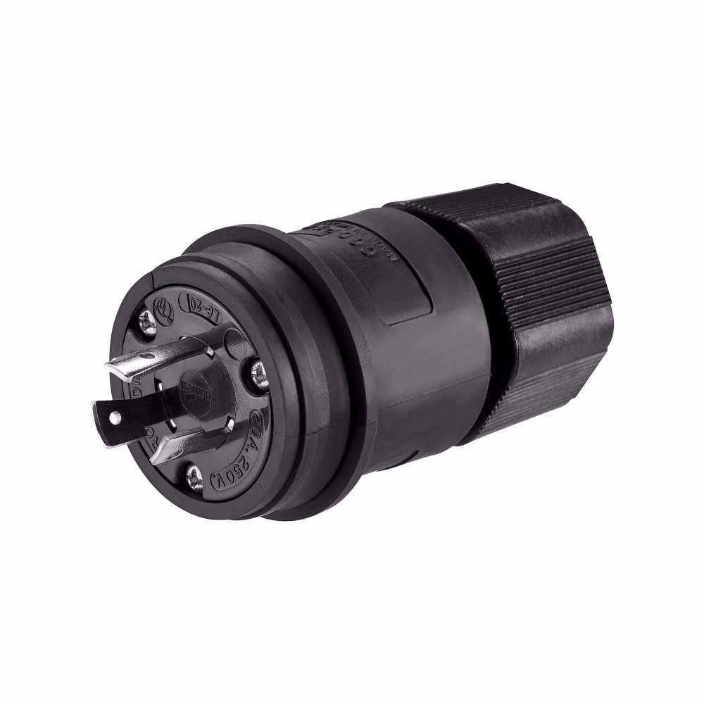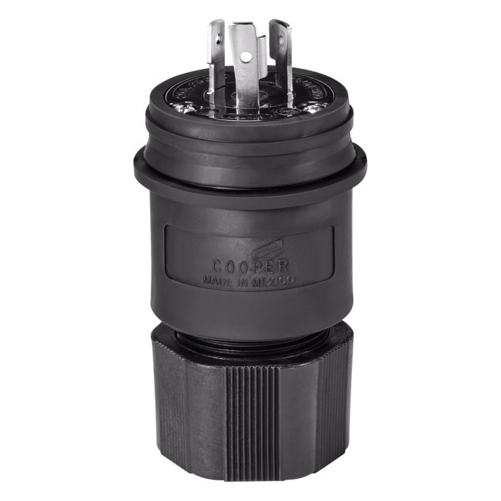 EATON Arrow Hart® L620PWBK Complex Environment Grounding Watertight Locking Plug, 250 VAC, 20 A, 2 Poles, 3 Wires, Black