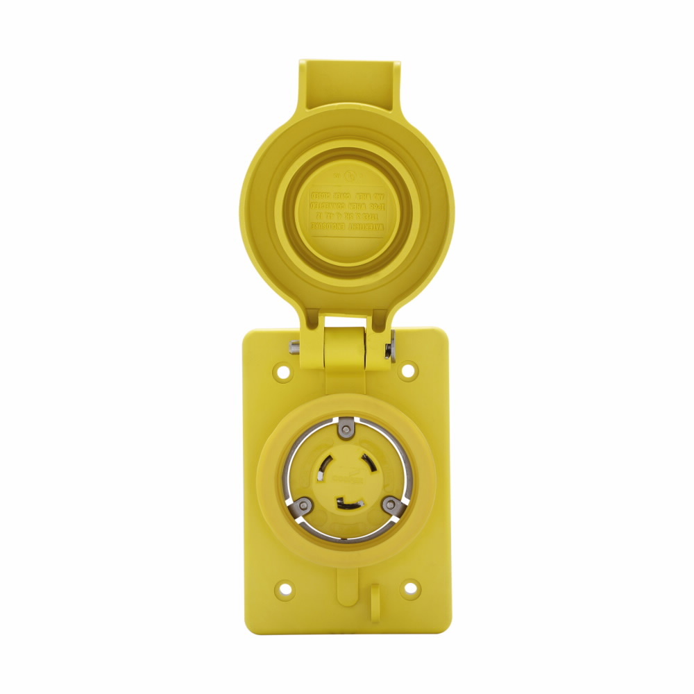 EATON Arrow Hart™ Hart-Lock® L620RW Single Watertight Locking Receptacle, 250 VAC, 20 A, 2 Poles, 3 Wires, Yellow