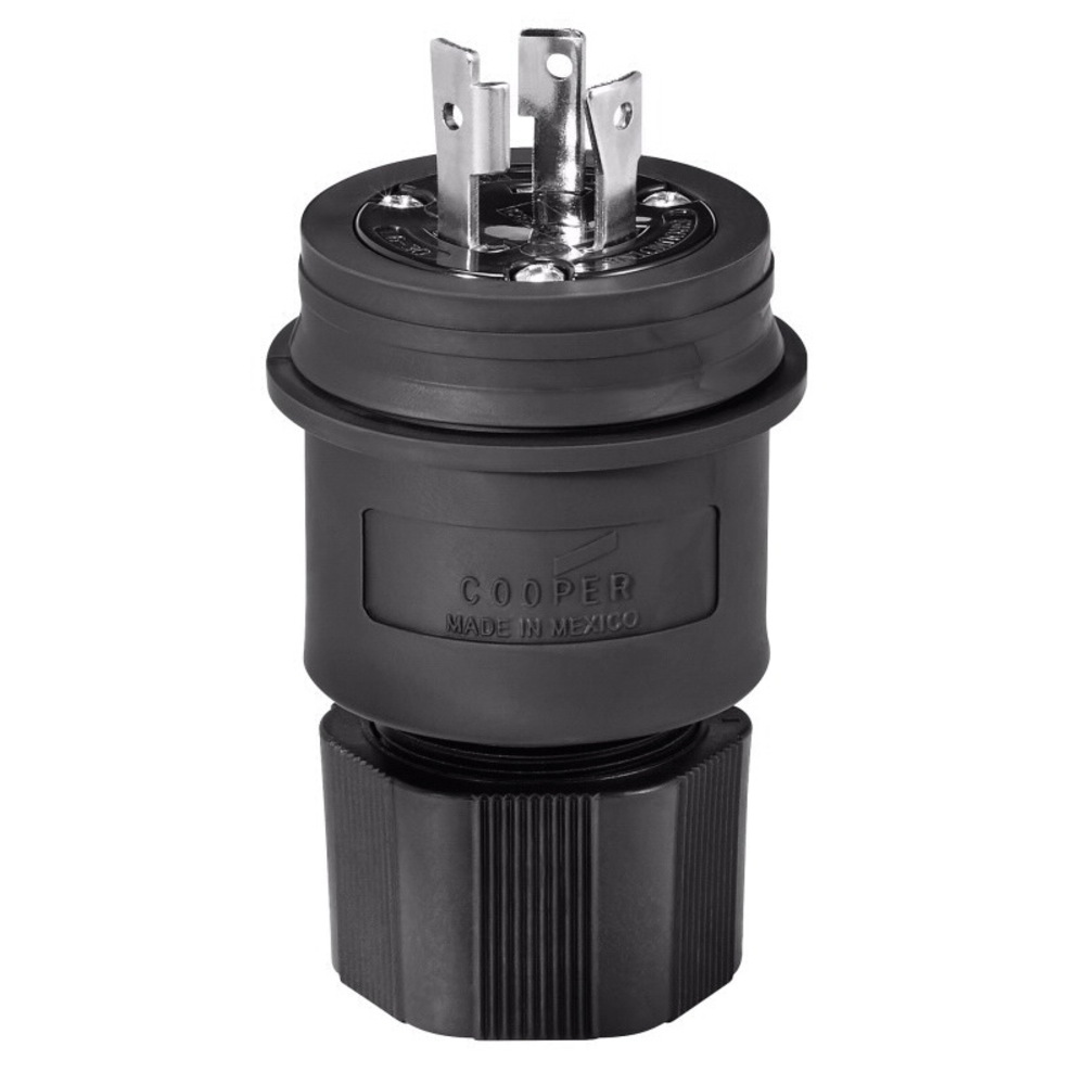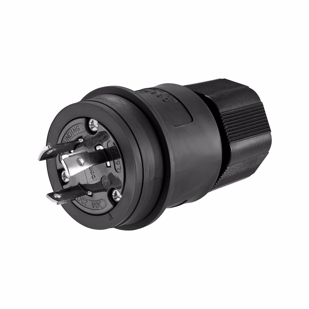 EATON Arrow Hart® L630PWBK Complex Environment Grounding Watertight Locking Plug, 250 VAC, 30 A, 2 Poles, 3 Wires, Black