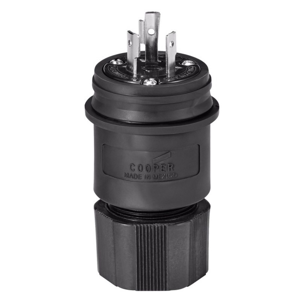 EATON Arrow Hart® L720PWBK Complex Environment Grounding Watertight Locking Plug, 277 VAC, 20 A, 2 Poles, 3 Wires, Black