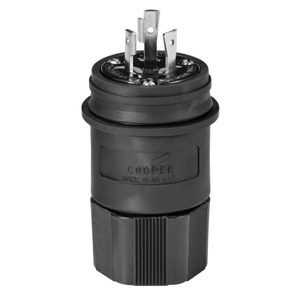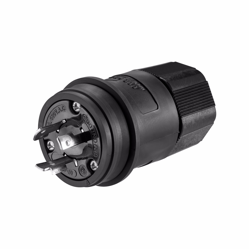 EATON Arrow Hart® L820PWBK Complex Environment Grounding Watertight Locking Plug, 480 VAC, 20 A, 2 Poles, 3 Wires, Black