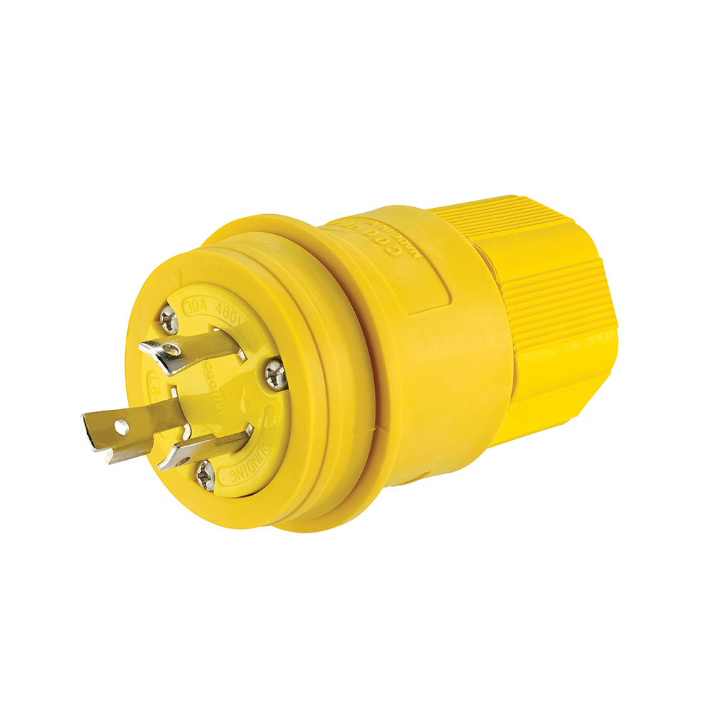 EATON Hart-Lock® L830PW Industrial Locking Plug, 480 V, 30 A, 2 Poles, 3 Wires, Yellow