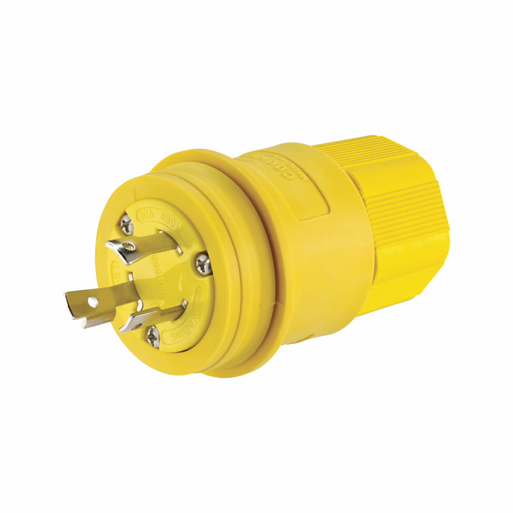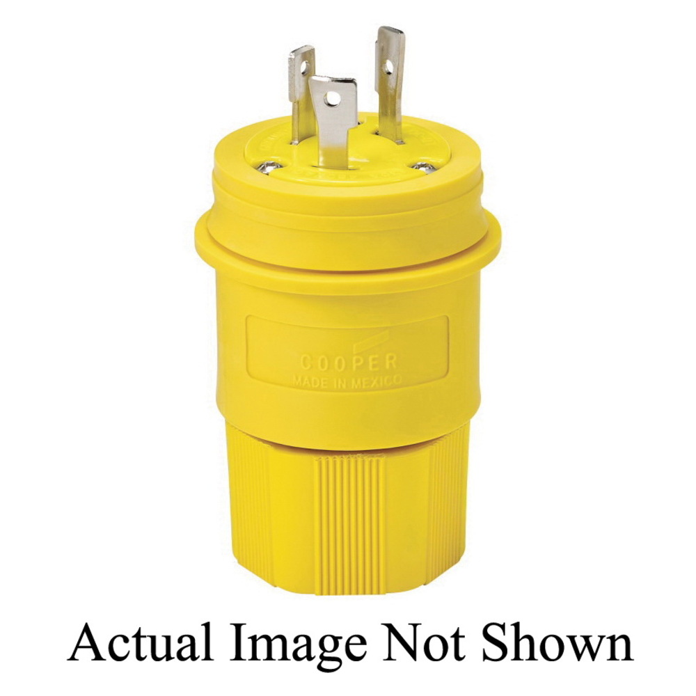 EATON Arrow Hart® L830PWBK Complex Environment Grounding Watertight Locking Plug, 480 VAC, 30 A, 2 Poles, 3 Wires, Black