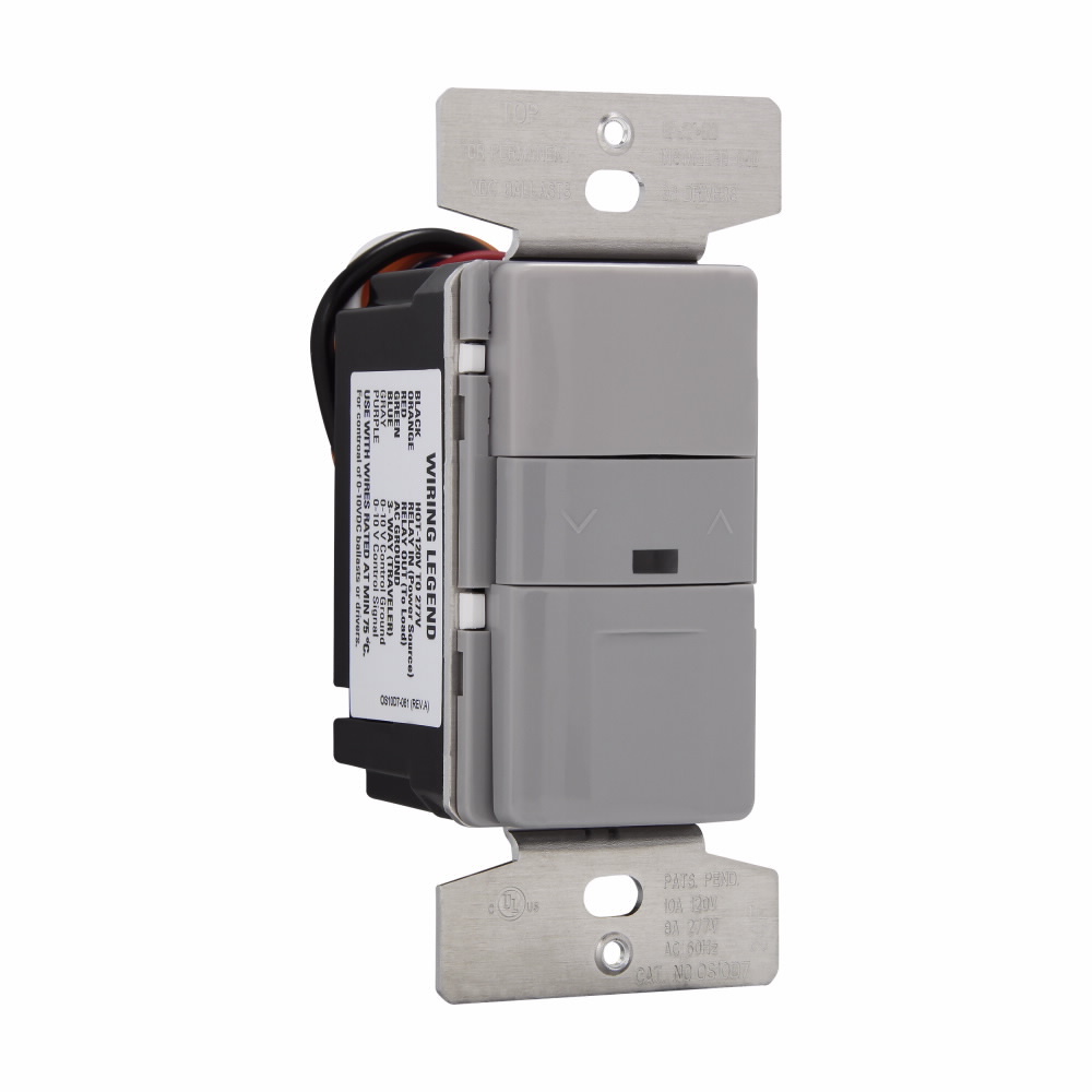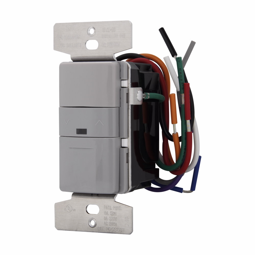 EATON OS10D7-GY 3-Way 1-Pole Wallbox Dimmer Sensor, 120/277 VAC, Occupancy Sensor, 1000 sq-ft Coverage, 180 deg Viewing, Flush Mount