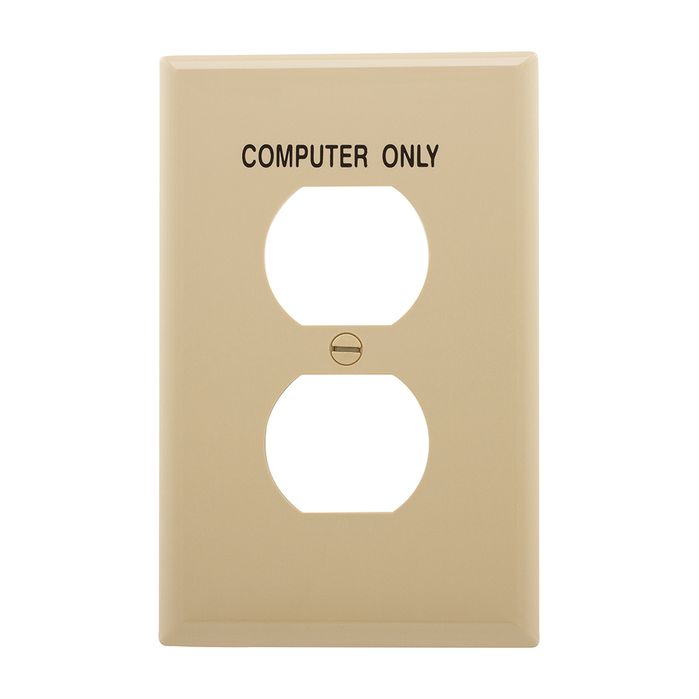EATON PJ8COV Medium Size Receptacle Wallplate, 1 Gang, 3.14 in L x 4.88 in W x 0.55 in H, Polycarbonate, Ivory