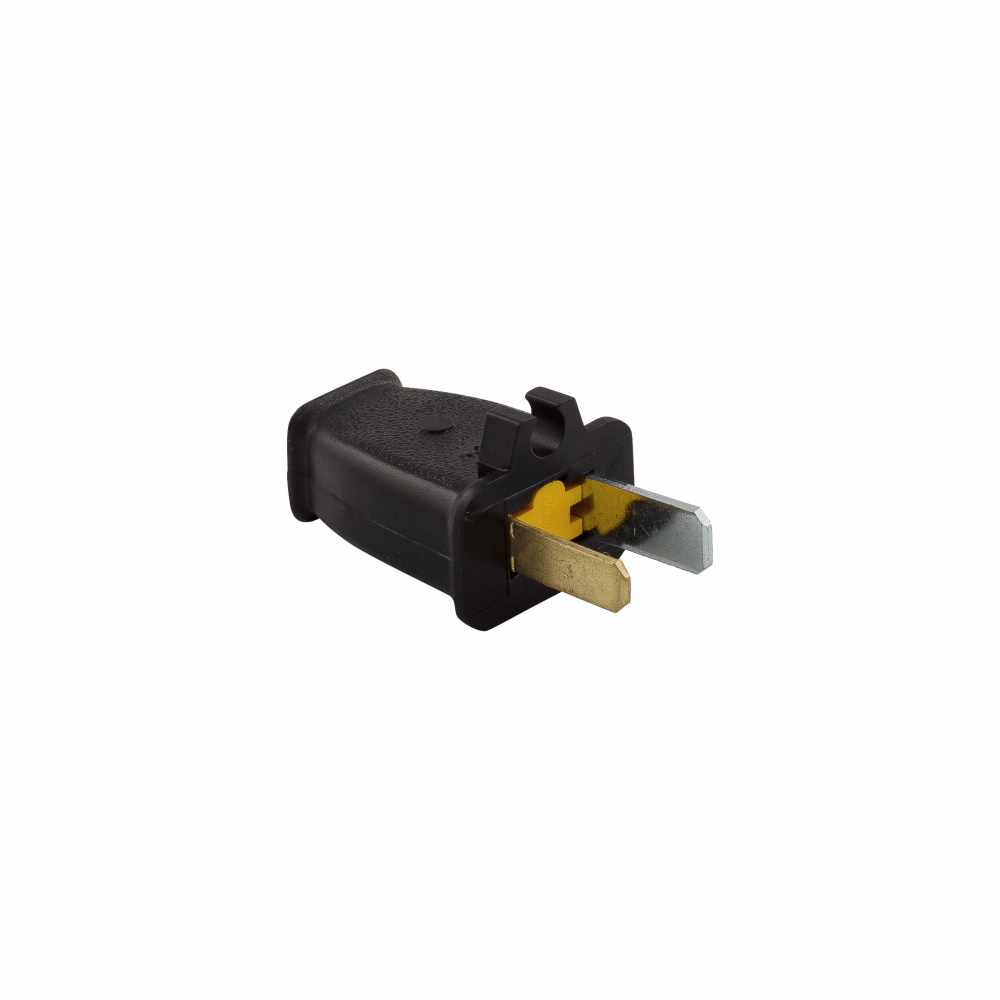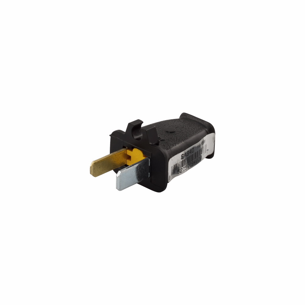 EATON SA940 Straight Blade Plug With Spring Action, 125 V, 15 A, 2 Poles, 2 Wires, Black
