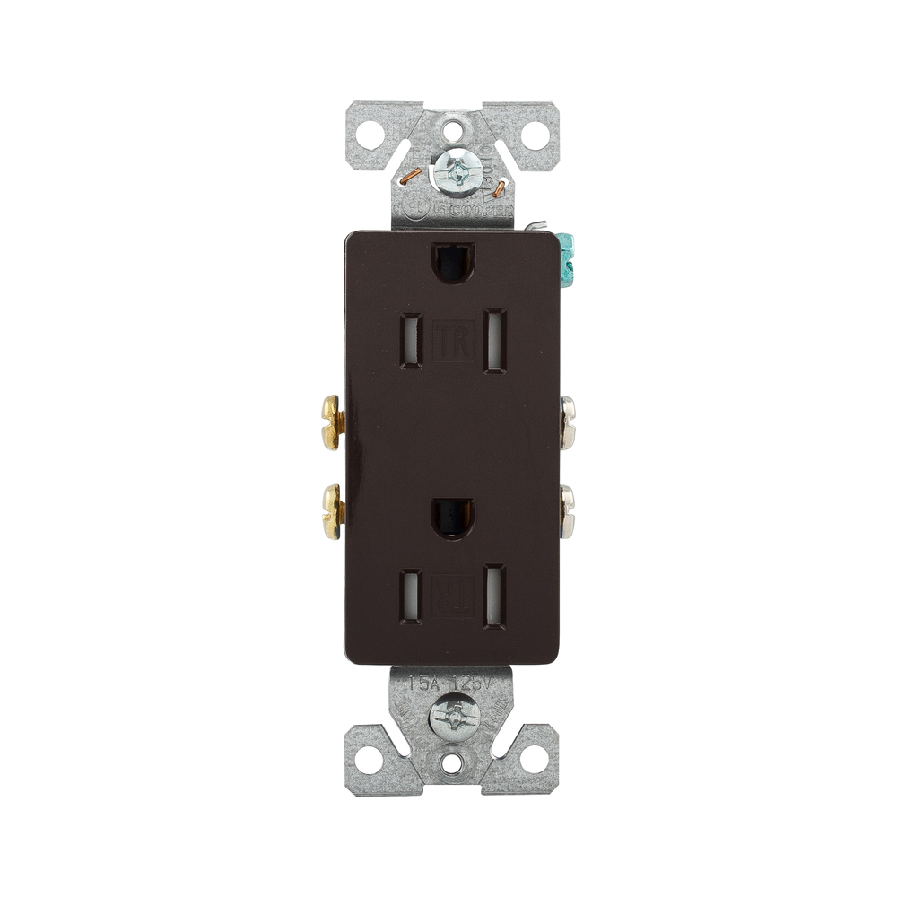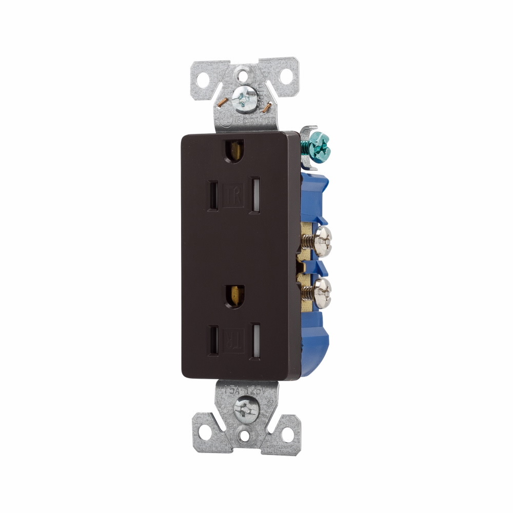 EATON TR1107-9B Auto Grounding Decorator Duplex Tamper Resistant Straight Blade Receptacle, 125 VAC, 15 A, 2 Poles, 3 Wires, Brown