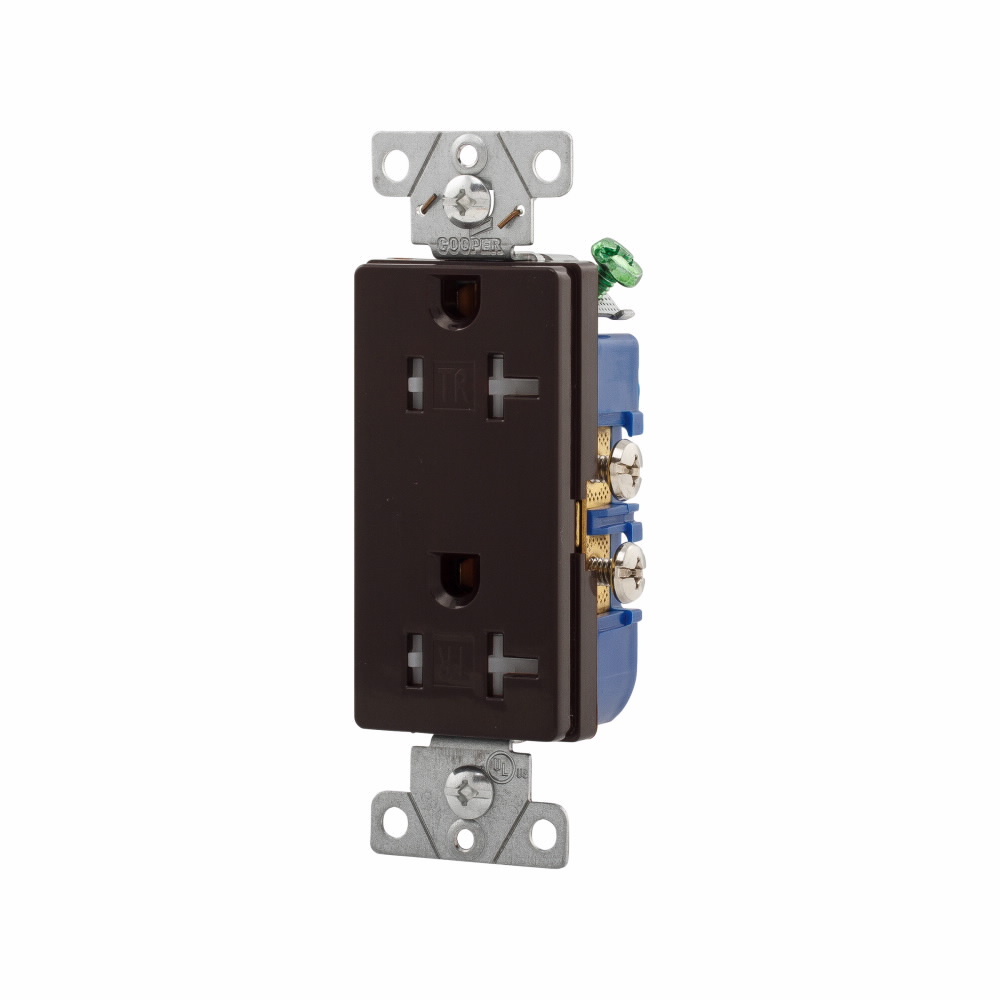 EATON TR1307B-BOX TR1307 Duplex Decorator Tamper-Resistant Straight Blade Receptacle, 125 VAC, 20 A, 2 Poles, 3 Wires, Brown