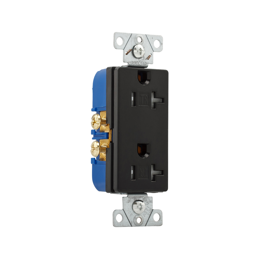 EATON TR1307BK-BOX Decorator Duplex Grounding Tamper Resistant Straight Blade Receptacle, 125 V, 20 A, 2 Poles, 3 Wires, Black