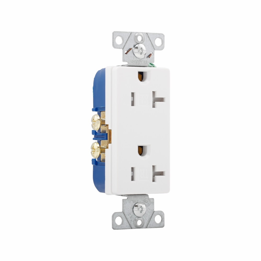 EATON TR1307W-BOX Decorator Duplex Grounding Tamper Resistant Straight Blade Receptacle, 125 V, 20 A, 2 Poles, 3 Wires, White