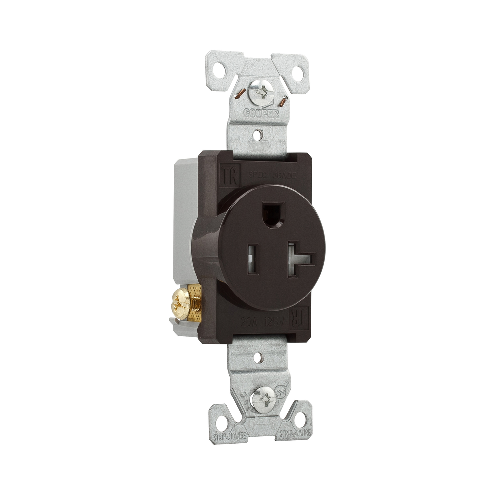 EATON Arrow Hart® TR1877B-BXSP TR1877 Receptacles Straight Blade Receptacle, 125 V, 20 A, 2 Poles, 3 Wires, Brown