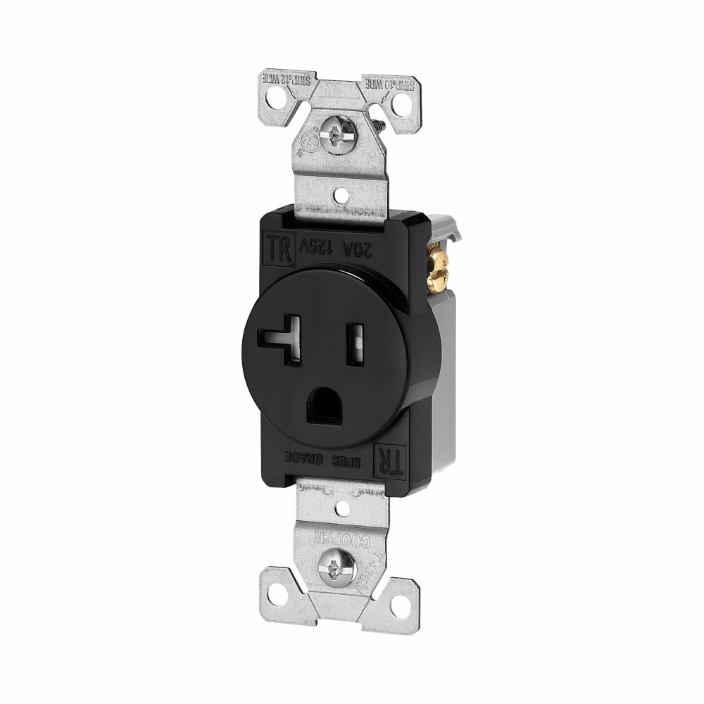 EATON Arrow Hart® TR1877BKBXSP TR1877 Receptacles Straight Blade Receptacle, 125 V, 20 A, 2 Poles, 3 Wires, Black
