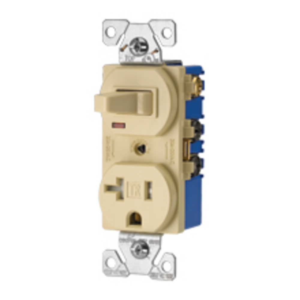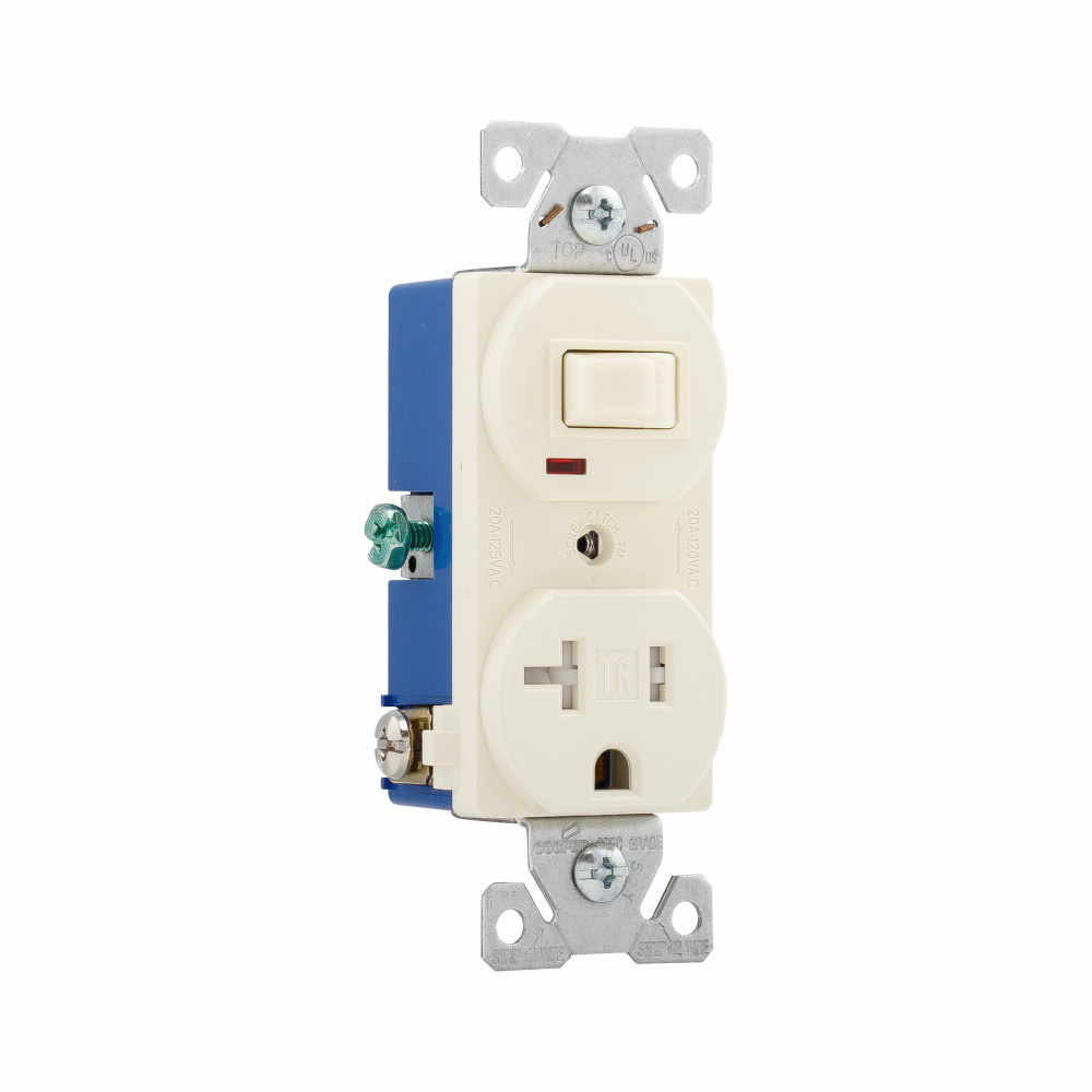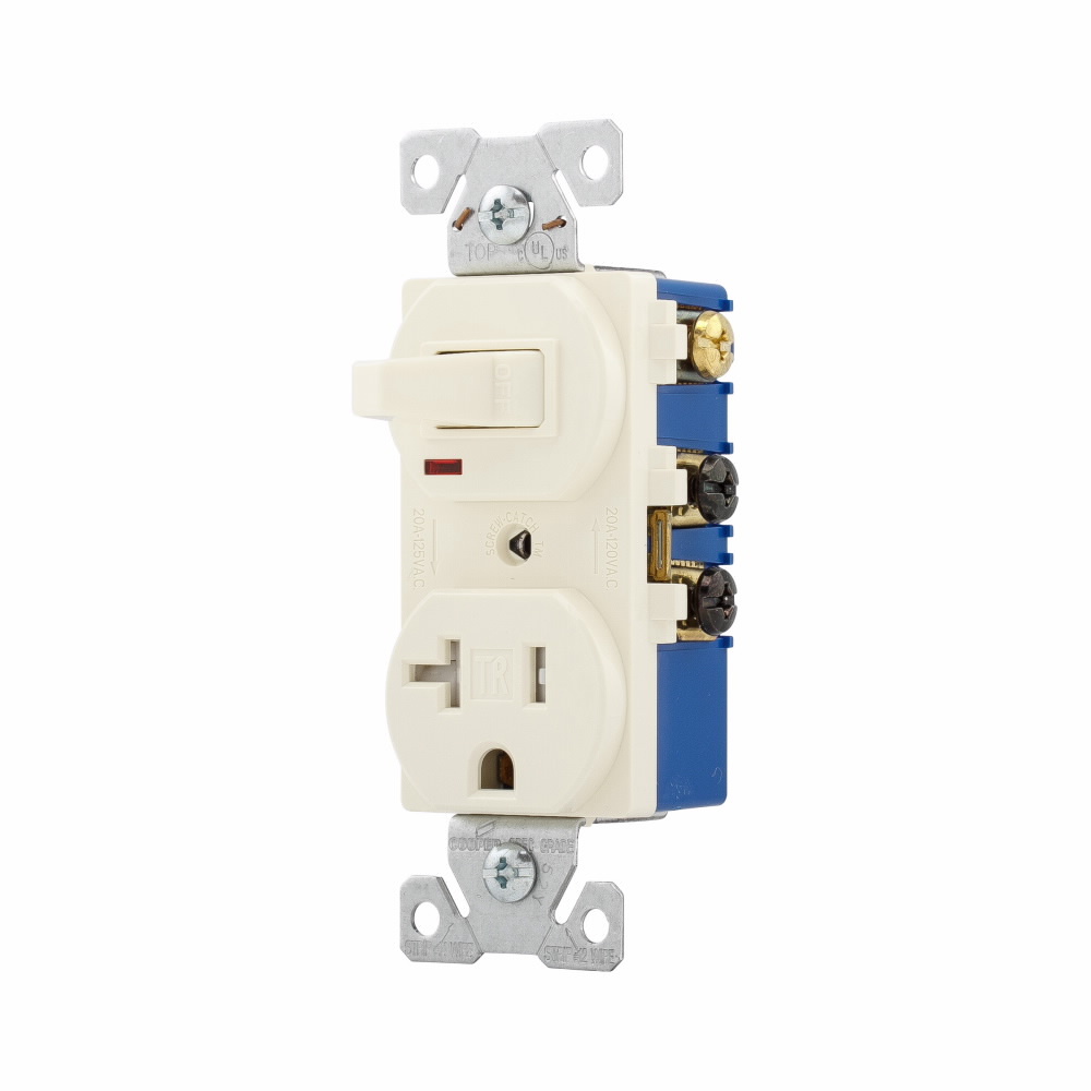 EATON Wiring Devices Arrow Hart® TR291A Duplex Tamper Resistant Toggle Straight Blade Combination Switch and Receptacle, 1 Poles, 3 Wires, 14 to 12 AWG Wire