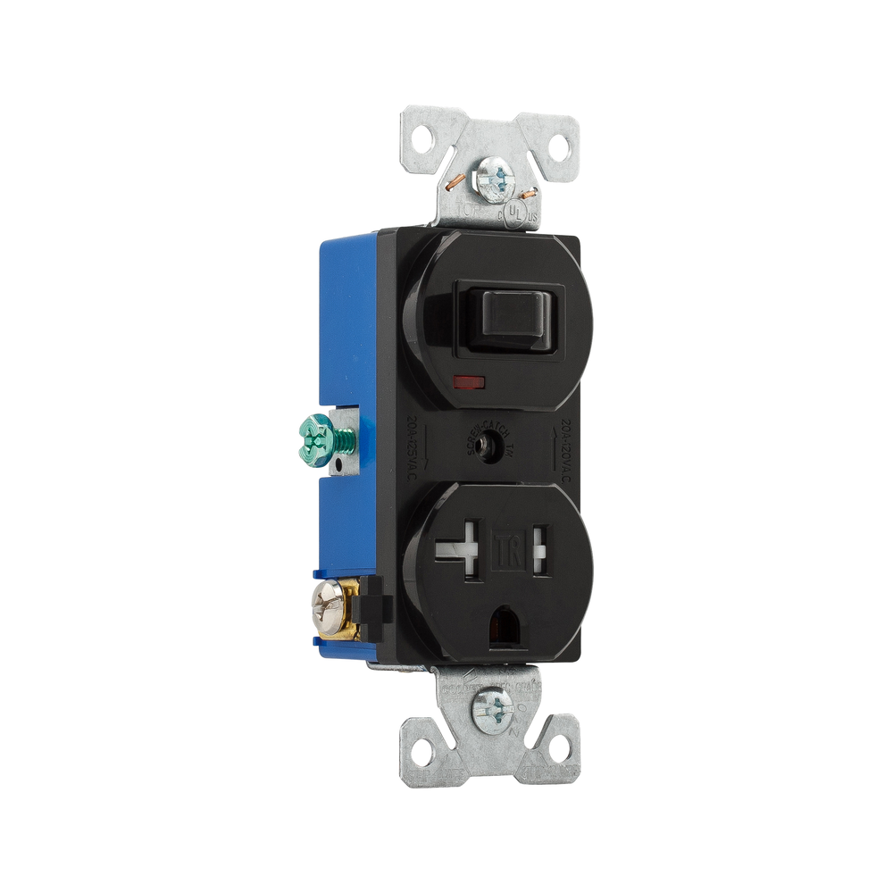 EATON Wiring Devices Arrow Hart® TR291BK Duplex Tamper Resistant Toggle Straight Blade Combination Switch and Receptacle, 1 Poles, 3 Wires, 14 to 12 AWG Wire