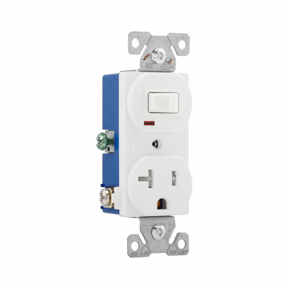 EATON TR291W Tamper-Resistant Standard Combination Switch, 120/125 V, 15 A, 2 Poles, 3 Wires, White