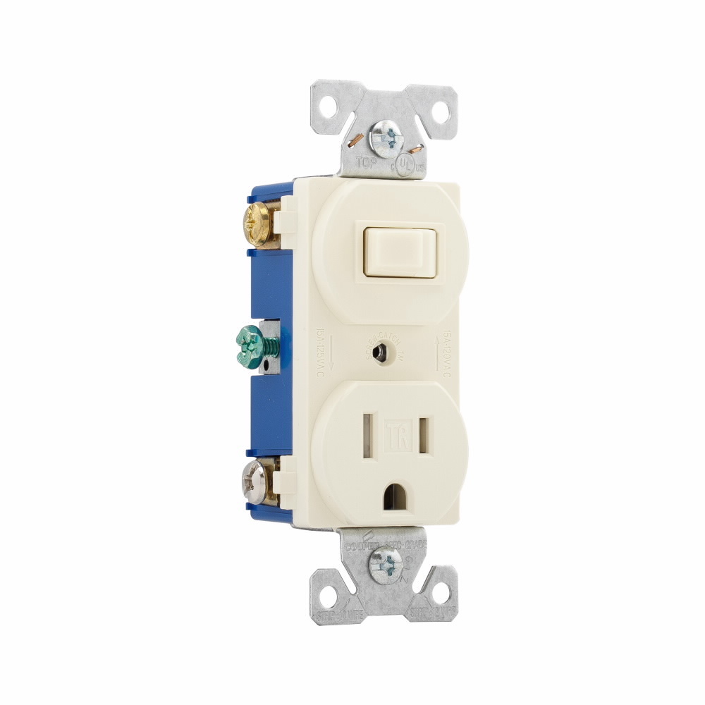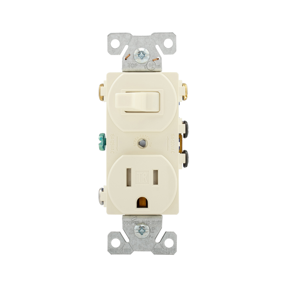 EATON Wiring Devices Arrow Hart® TR293A 3-Way Duplex Tamper Resistant Toggle Straight Blade Combination Switch and Receptacle, 2 Poles, 3 Wires, 14 to 12 AWG Wire
