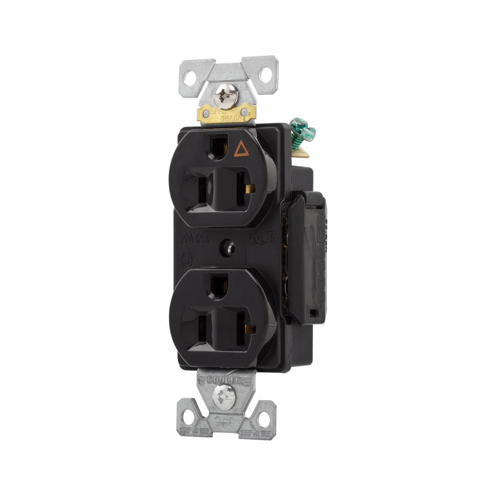 EATON Arrow Hart® TR5362BK TR5362 Duplex Grounding Standard Tamper-Resistant Straight Blade Receptacle, 125 VAC, 20 A, 2 Poles, 3 Wires, Black