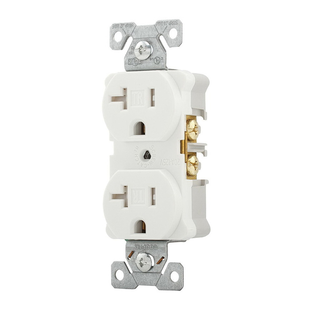 EATON Arrow Hart® TR5362W TR5362 Duplex Grounding Standard Tamper-Resistant Straight Blade Receptacle, 125 VAC, 20 A, 2 Poles, 3 Wires, White