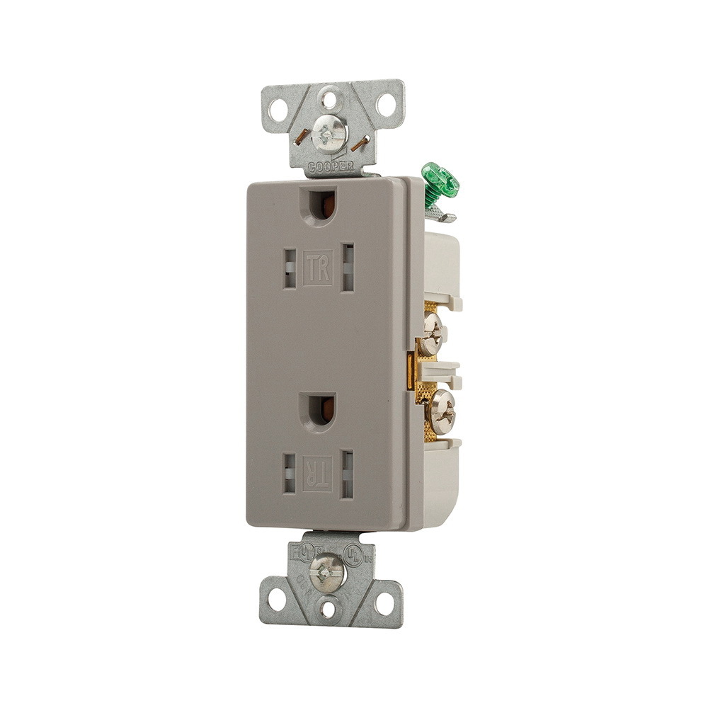 EATON TR6252GY-BOX TR5262 Decorator Duplex Grounding Tamper-Resistant Straight Blade Receptacle, 125 VAC, 15 A, 2 Poles, 3 Wires, Gray