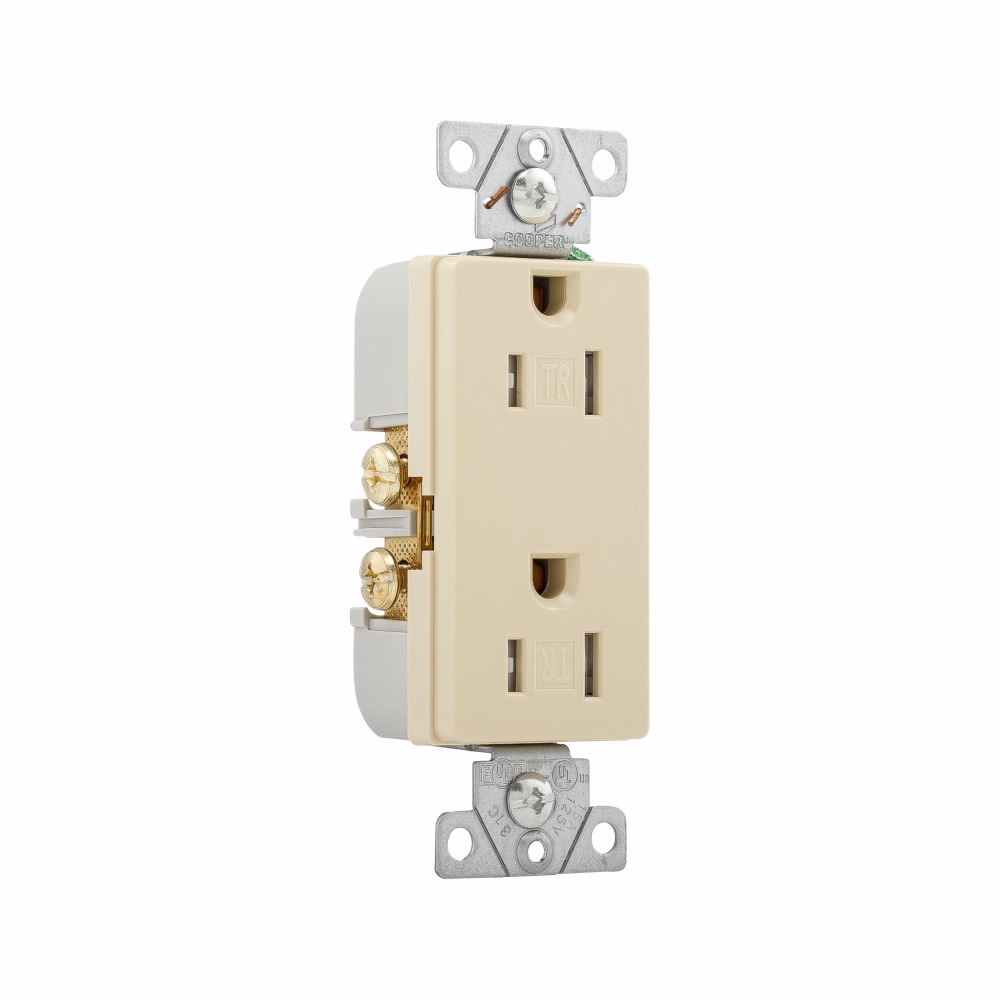 EATON Arrow Hart® TR6252V-BOX TR6252 Duplex Straight Blade Receptacle, 125 V, 15 A, 2 Poles, 3 Wires, Ivory