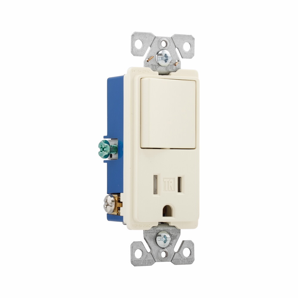 EATON TR7730A TR7730 Decorator Straight Blade Receptacle, 120/277 V, 15 A, 1 Poles, 3 Wires, Almond