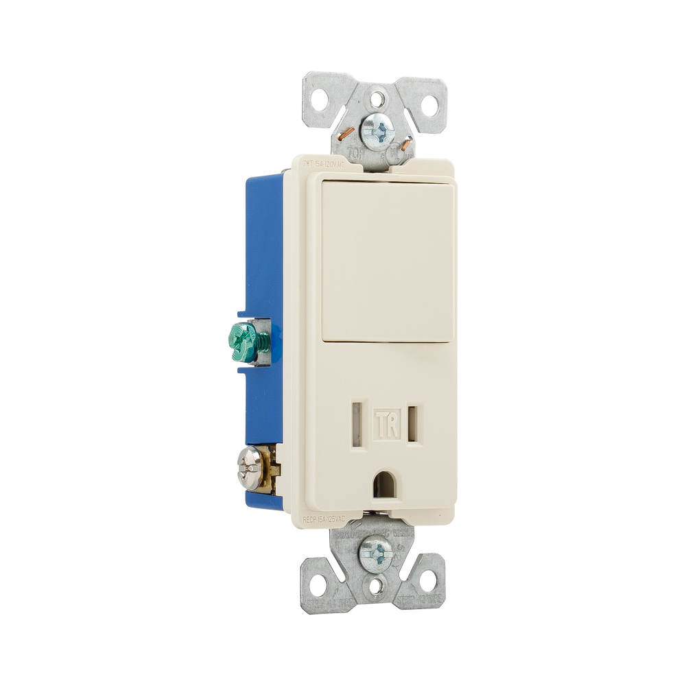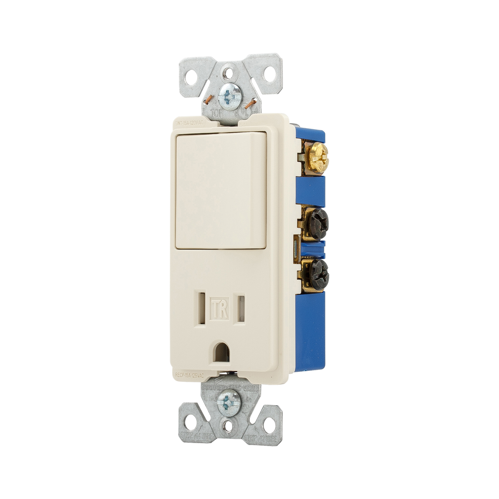 EATON TR7730LA-SP-L TR7730 Decorator Straight Blade Receptacle, 120/277 V, 15 A, 1 Poles, 3 Wires, Light Almond