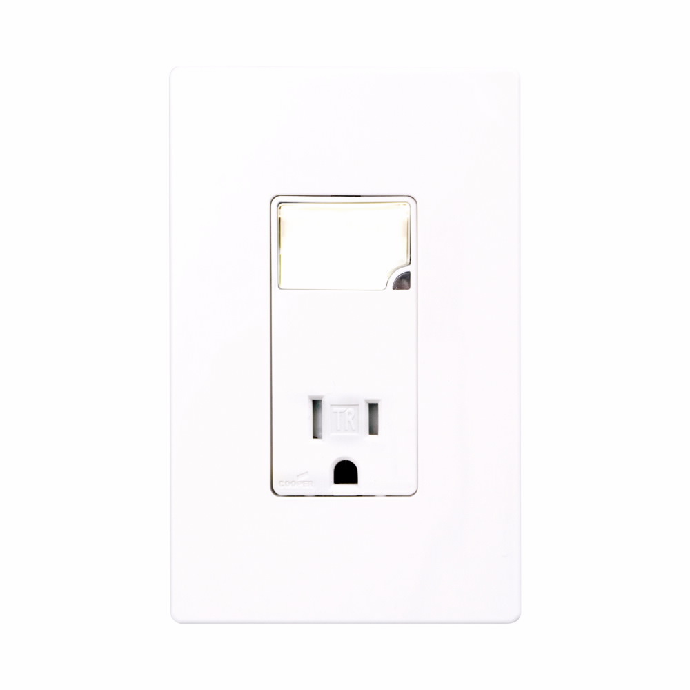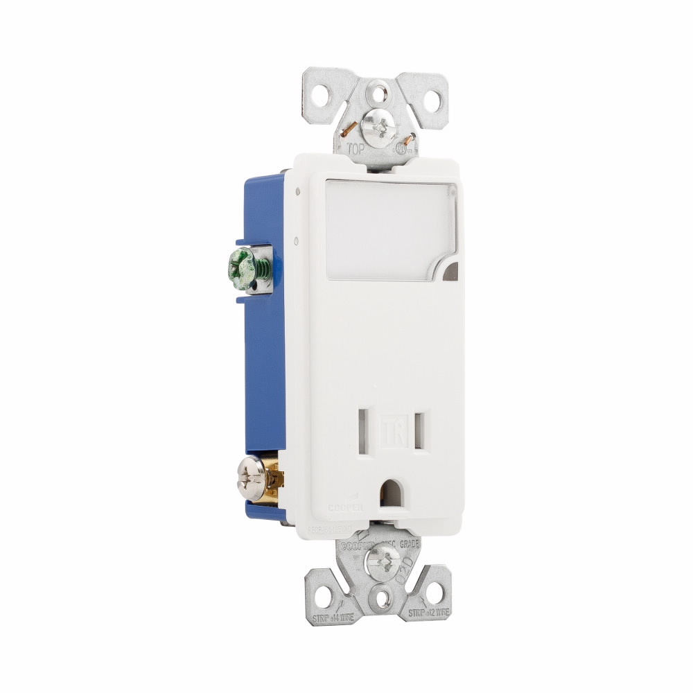 EATON Wiring Devices TR7735W-BOX Dimmable Combination Nightlight With NEMA 5-15R Receptacle, 120/277 VAC, 15 A, 1 W, 2 Poles, 3 Wires, 14 to 12 AWG Wire