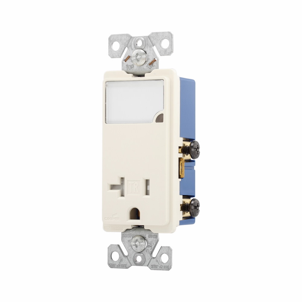 EATON Patrol™ TR7736LA-BOX 2-Pole Combination Dimmable Night Light With TR Receptacle,) LED Lamp, 1 W Fixture, 120 to 277 VAC, Light Almond Housing
