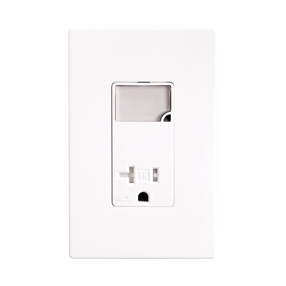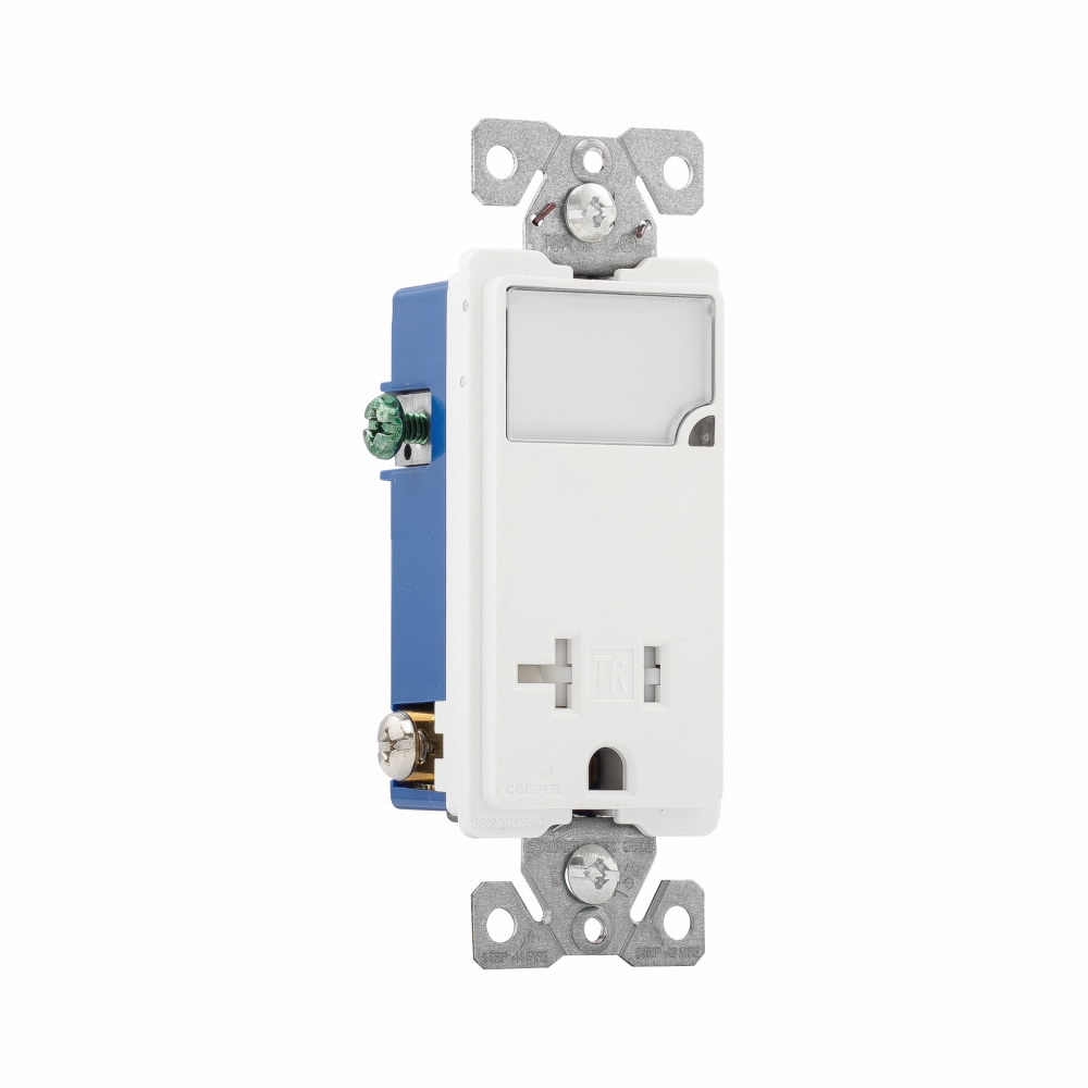 EATON Patrol™ TR7736W-BOX 2-Pole Combination Dimmable Night Light With TR Receptacle,) LED Lamp, 1 W Fixture, 120 to 277 VAC, White Housing