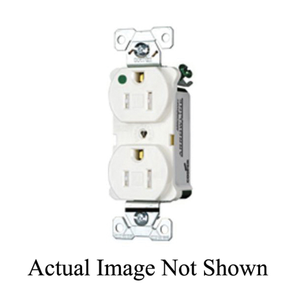 EATON Arrow Hart® TR8200GY TR8200 Duplex Straight Blade Receptacle, 125 V, 15 A, 2 Poles, 3 Wires, Gray