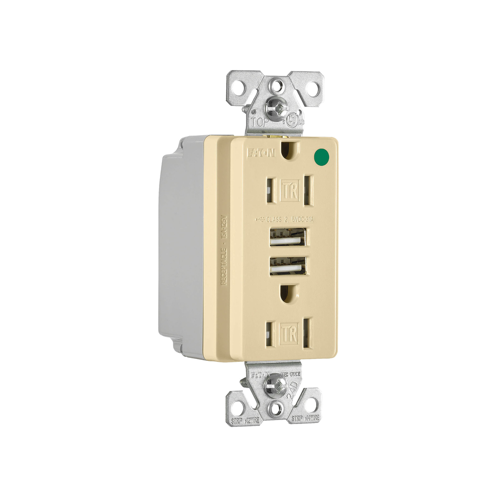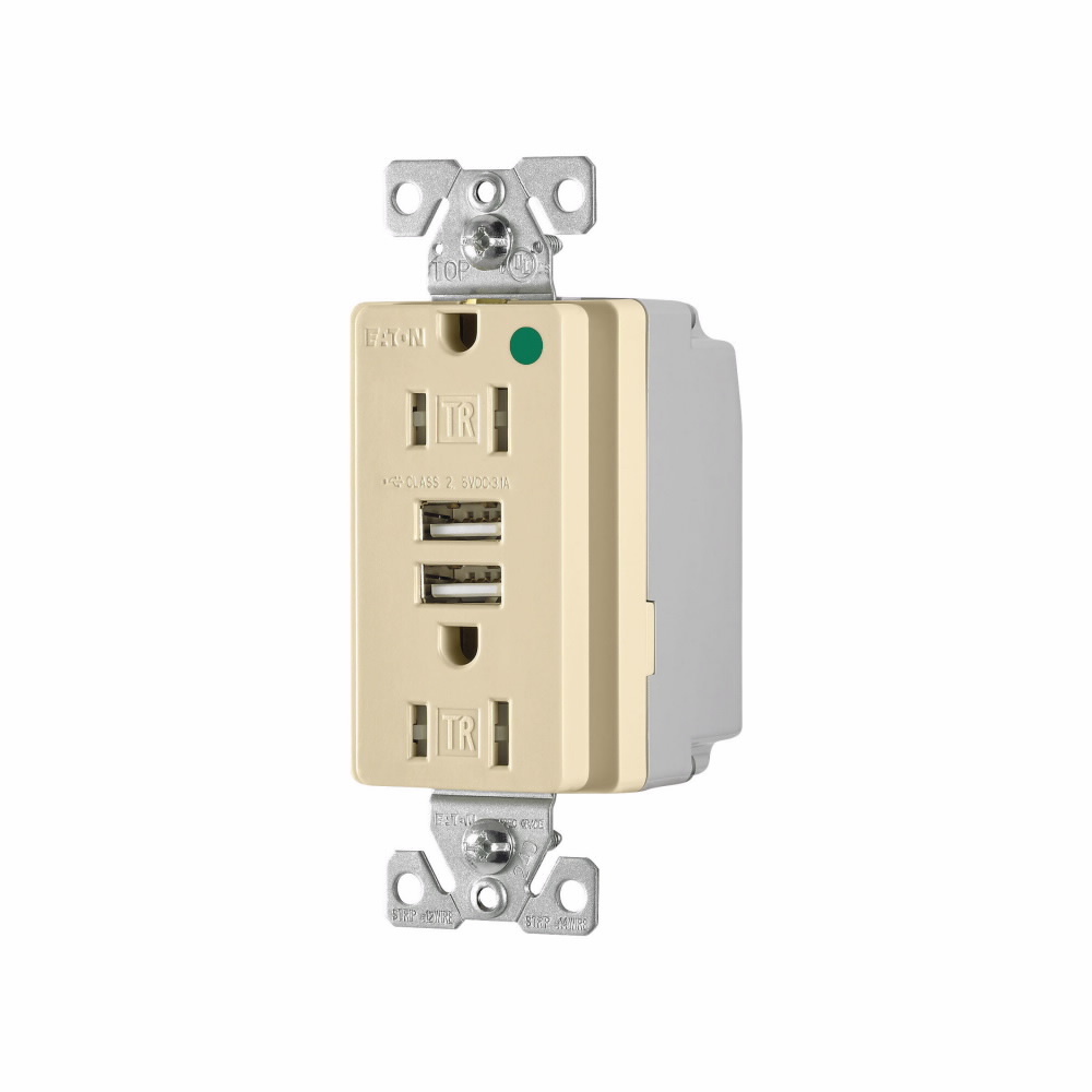 EATON Arrow Hart® TR8255V USB Combo USB Charger and Duplex Receptacle, 2 Poles, 3 Wires, Ivory